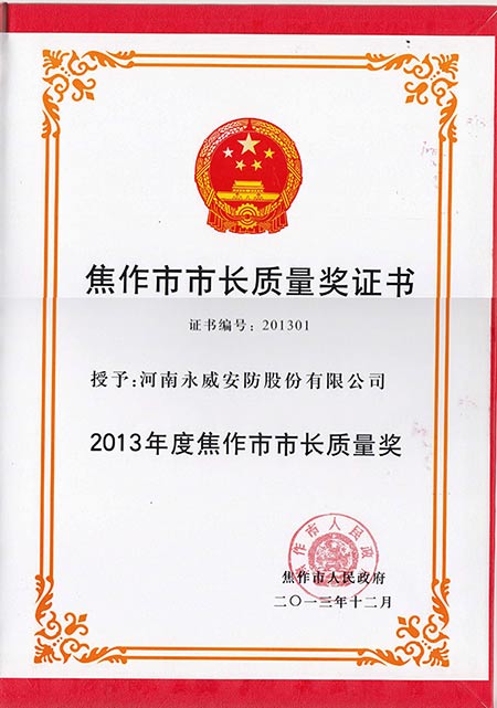 焦作市市長(zhǎng)質(zhì)量獎(jiǎng)-證書