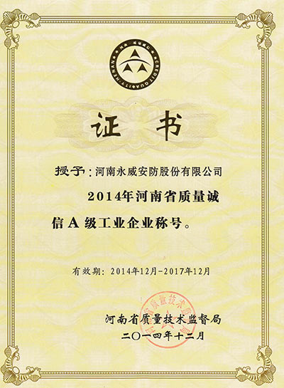 質(zhì)量誠(chéng)信A級(jí)工業(yè)企業(yè)-證書